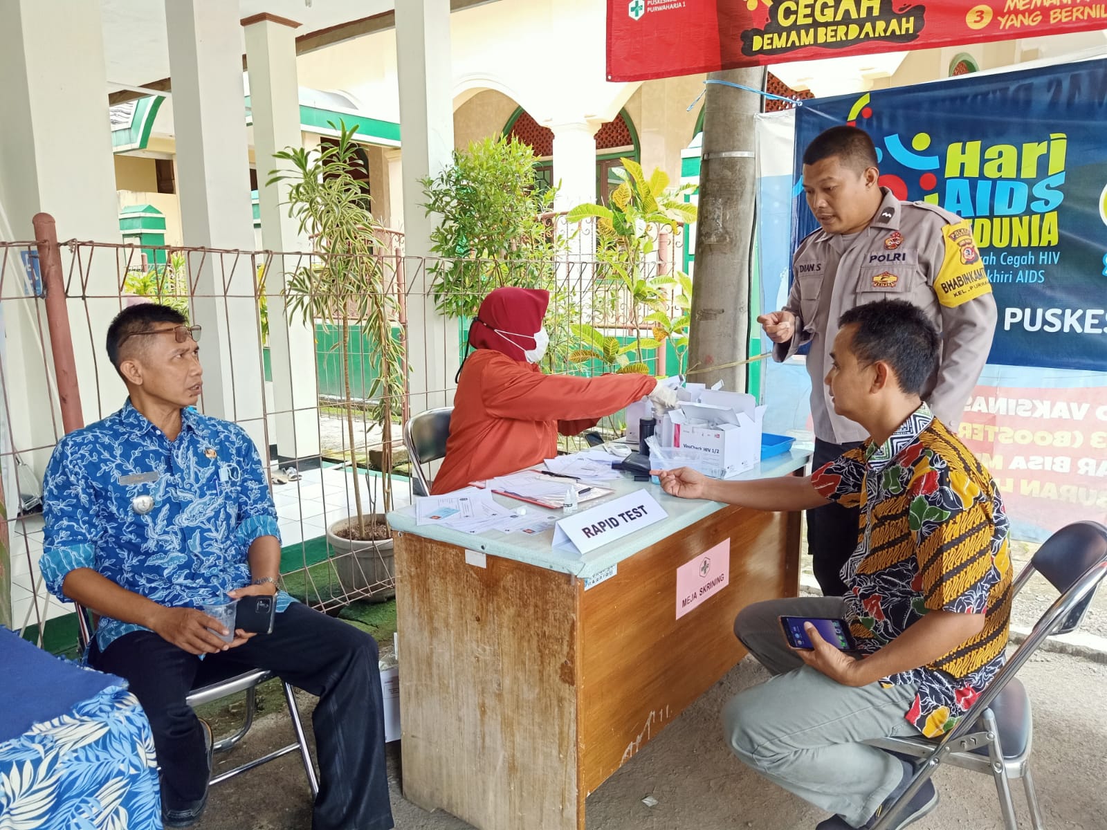 Kota Banjar, Mediasakti.id ,- Polres Banjar Polda Jabar. Dalam rangka memperingati Hari AIDS Sedunia yang jatuh setiap tanggal 1 Desember, Bhabinkamtibmas Kelurahan Purwaharja Polsek Purwaharja Aipda Dian Susanto melakukan monitoring pelaksanaan Test HIV/AIDS yang dilaksanakan oleh tenaga kesehatan dari Puskesmas Purwaharja 1 di halaman Puskesmas Purwaharja 1 Lingkungan Siluman Rt 28 Rw 13 Kelurahan Purwaharja Kecamatan Purwaharja Kota Banjar, Kamis ( 01/12/2022).