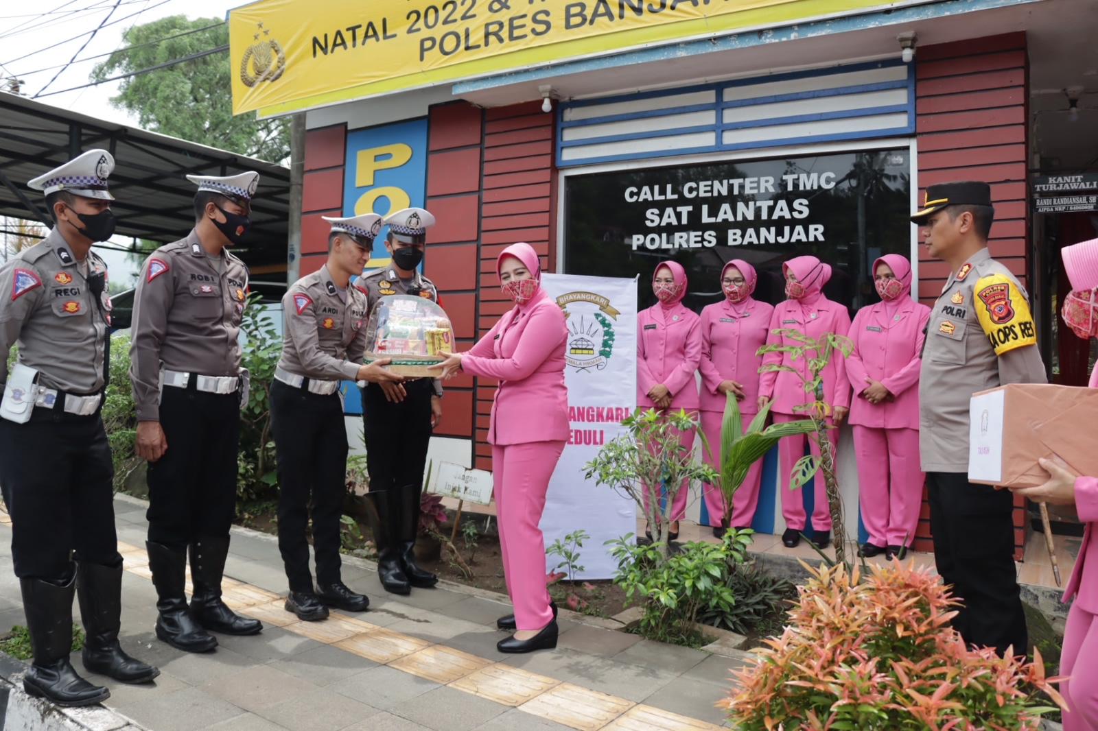 Kota Banjar, Mediasakti.id,- Polres Banjar Polda Jabar. Ketua Bhayangkari Cabang Banjar Ny. Nita Bayu didampingi Kapolres Banjar AKBP Bayu Catur Prabowo, S.H.,S.I.K.,M.M. memberikan bingkisan kepada personel gabungan yang bertugas di Pos Pam-pos pam dalam rangka Ops Lilin Lodaya 2022. (26/12/2022)