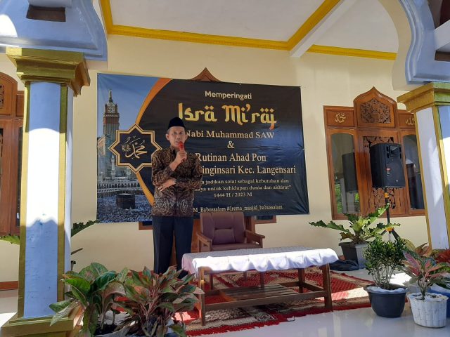 Kota Banjar, Mediasakti.id,- Bhabinkamtibmas Desa Waringinsari Polsek Langensari Polres Banjar menghadiri kegiatan Peringatan Isra Mi’raj Nabi Besar Muhammad SAW dan pengajian rutin bulanan Ahad Pon,