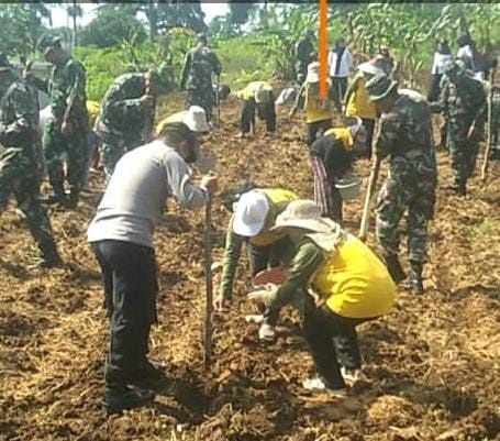 Tak hanya itu, anggota Polsek Cipaku Polres Ciamis, Koramil dan Kecamatan dilapangan juga membantu warga bergotong royong menyukseskan program ketahanan pangan. Dengan melakukan penanaman jagung.