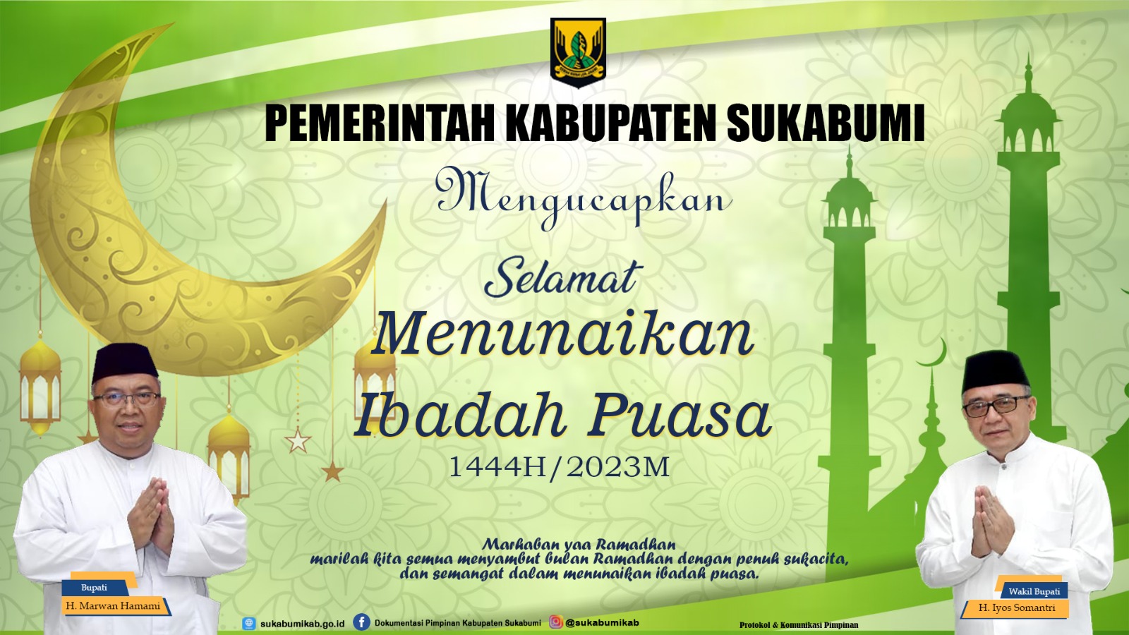 Beranda Regional Priangan Barat Pemerintah Kabupaten Sukabumi RegionalPriangan Barat Pemerintah Kabupaten Sukabumi Penulis Redaksi - 22/03/2023 289 FacebookTwitterPinterestWhatsApp Pemerintah Kabupaten Sukabumi, Media Sakti.id,- Mengucapkan Marhaban ya Ramadhan Selamat Menunaikan Ibadah Puasa Ramadhan 1444 Hijriah / 2023 M. Ka Biro Kab Sukabumi : Deni Handersen