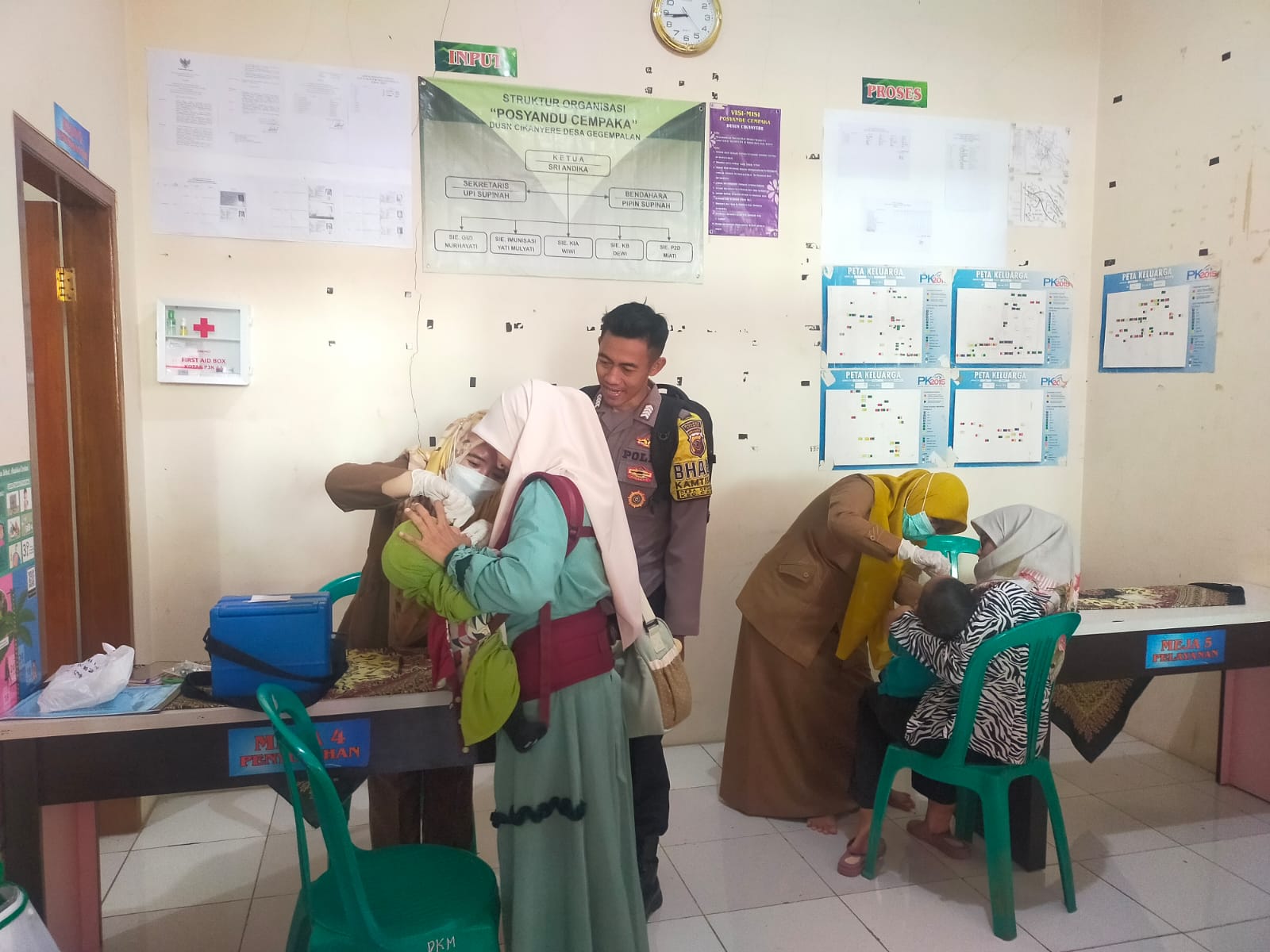 Kab Ciamis, mediasakti.id,- Personel Bhabinkamtibmas Polsek Cikoneng Polres Ciamis Polda Jabar melaksanakan sambang sekaligus monitoring dan bantu petugas kesehatan di Pekan Imunisasi Nasional Polio. Salah satunya monitoring di Posyandu Dusun Cikanyere, Desa Gegempalan, Kecamatan Cikoneng, Kabupaten Ciamis, Jawa Barat, Senin (03/04/2023).