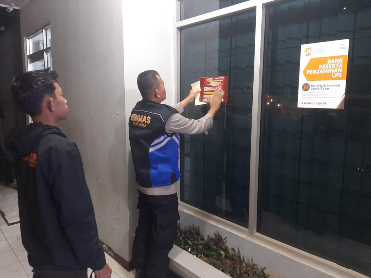 Polsek Sukadana Polres Ciamis Giat Pemasangan Poster Tindak Pidana Perdagangan Orang di Kantor BRI Unit Ciilat