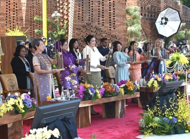 Pada kesempatan tersebut, Ibu Iriana juga mengajak para pendamping pemimpin ASEAN dan mitra untuk bermain alat musik dari Jawa Barat, angklung. Setelahnya, pertunjukan teatrikal kembali ditampilkan dengan latar belakang cerita perjalanan anak-anak berlayar menuju Ibu Kota Nusantara (IKN) di Pulau Kalimantan.