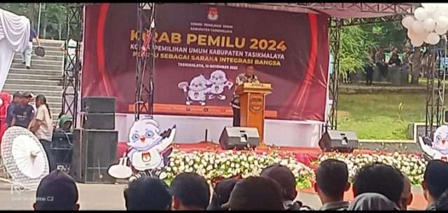 Pada kesempatan itu, Ketua KPU Kabupaten Tasikmalaya mengajak seluruh peserta yang hadir untuk ikut membacakan Deklarasi Pemilu Sebagai Sarana Integrasi Bangsa yang diikuti oleh seluruh yang hadir. Semua hadirin lalu mengikuti kata demi kata yang tertulis dalam deklarasi tersebut . Adapun isi dari Deklarai itu adalah 1). Mewujudkan Pemilu 2024 sebagai sarana integrasi bangsa. 2). Melaksanakan Pemilu 2024 secara langsung, umum, bebas, rahasia, jujur dan adil. 3). Melaksanakan Pemilu 2024 yang berintegritas dan bertanggung jawab terhadap proses dan hasil. 4). Mewujudkan Pemilu 2024 untuk memajukan kesejahteraan umum dan mencerdaskan kehidupan bangsa.