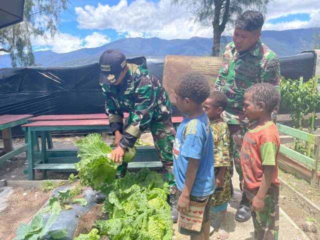 Intan Jaya, Media Sakti.id,- Tagline “KOTEKA” (Kostrad Tebarkan Kedamaian) yang diusung oleh Satgas Pamtas Mobile Yonif 330 Tri Dharma dalam masa penugasannya di wilayah Kabupaten Intan Jaya, Papua Tengah terus diimplementasikan secara berkelanjutan. Alhasil, banyak hal positif yang manfaatnya dapat dirasakan dan dinikmati secara langsung oleh masyarakat di daerah penugasan. Seperti halnya kali ini, para Ksatria Tri Dharma mengajak para bocah cilik (Bocil) untuk memanen Sawi Putih yang ada di Kebun Pos Mamba, distrik Sugapa, Kab. Intan Jaya, Papua Tengah, pada Senin (19/2/24).