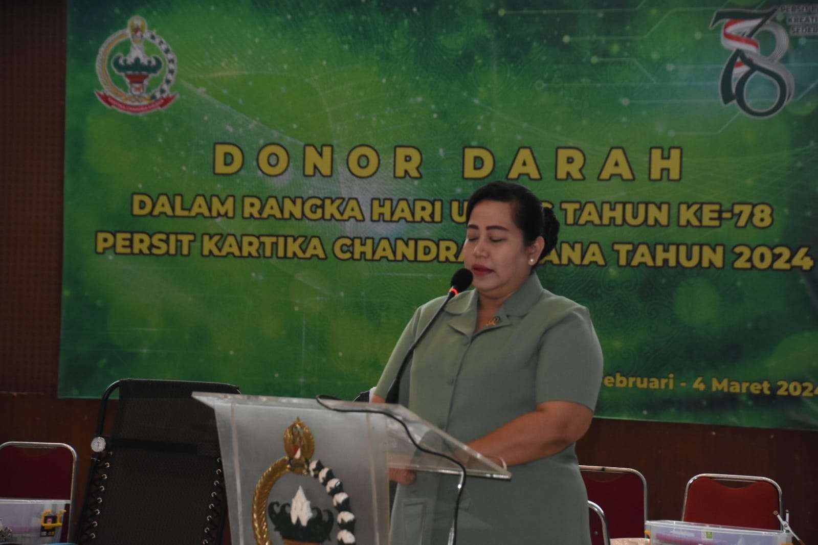 Ketua Persit Kartika Chandra Kirana Daerah III/Siliwangi Ny. Dwi Erwin Djatniko dalam sambutannya menyampaikan tentang pentingnya kegiatan Donor Darah, USG Mammae dan Pap Smear yang dilaksanakan dalam rangka menyambut HUT Ke-78 Persit Kartika Chandra Kirana.