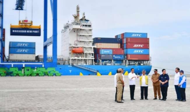 “Makassar New Port ini adalah terbesar setelah Tanjung Priok. Kedalamannya 16 meter, juga termasuk pelabuhan terdalam yang sangat baik untuk bersandarnya kapal-kapal besar untuk mengangkut kontainer,” ucap Presiden.