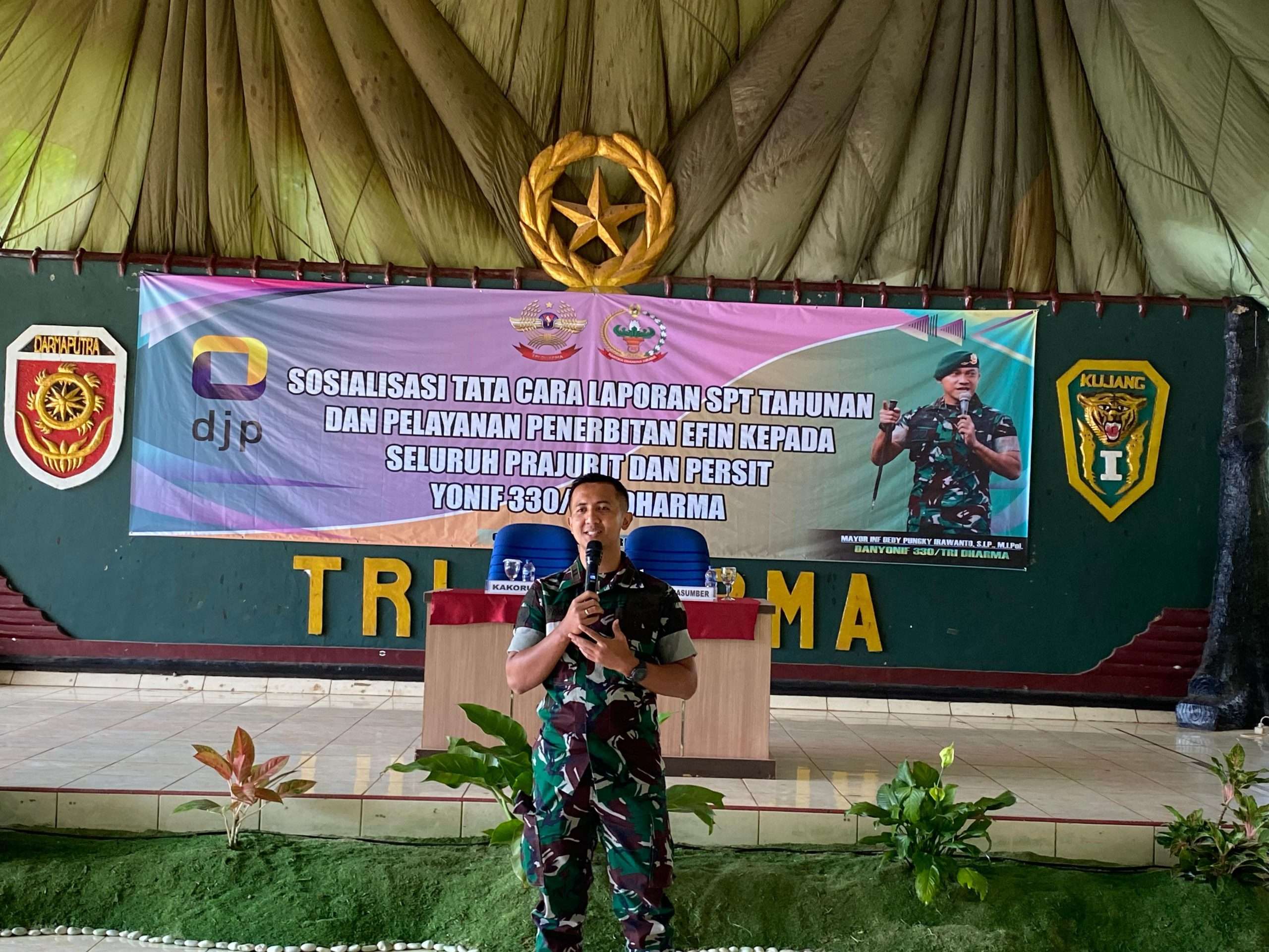 Dalam arahan Danyonif 330 yang dibacakan Kakorum Yonif 330, Lettu Inf Yogi Prasetyo, S.T. Han disampaikan bahwa seluruh warga negara yang menjadi Wajib Pajak (WP) orang pribadi harus melakukan pelaporan pajak. Jika wajib pajak tidak menyampaikan SPT tahunan, maka wajib pajak terancam dikenakan sanksi administratif berupa denda, bahkan tindakan hukum jika terbukti melakukan tindak pidana perpajakan.