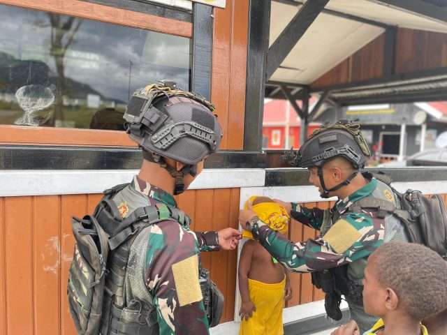Intan Jaya, Media Sakti.id,- Kedekatan hubungan emosional antara para Ksatria Tri Dharma dengan anak-anak di Intan Jaya membuat mereka seolah tak ingin berpisah. Setiap harinya, anak-anak di Intan Jaya menghabiskan waktu berjam-jam untuk bercengkerama bersama para Ksatria Tri Dharma. Seperti yang terlihat saat Satgas Pamtas Mobile Yonif 330 Tri Dharma membagikan baju dan boneka-boneka cantik untuk anak-anak Papua, bertempat di Pos Mamba, Distrik Sugapa, Kab. Intan Jaya, Papua Tengah, pada Rabu (20/3/24).