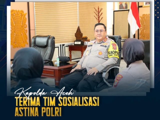 ” Kapolda Aceh hari ini menerima Tim sosialisasi Aplikasi Terpadu Informasi Naskah Administrasi (Astina) Polri, di ruang kerjanya, Gedung Satya Haprabu, Lantai 2 Mapolda Aceh”, sebut Kabid Kabid Humas.