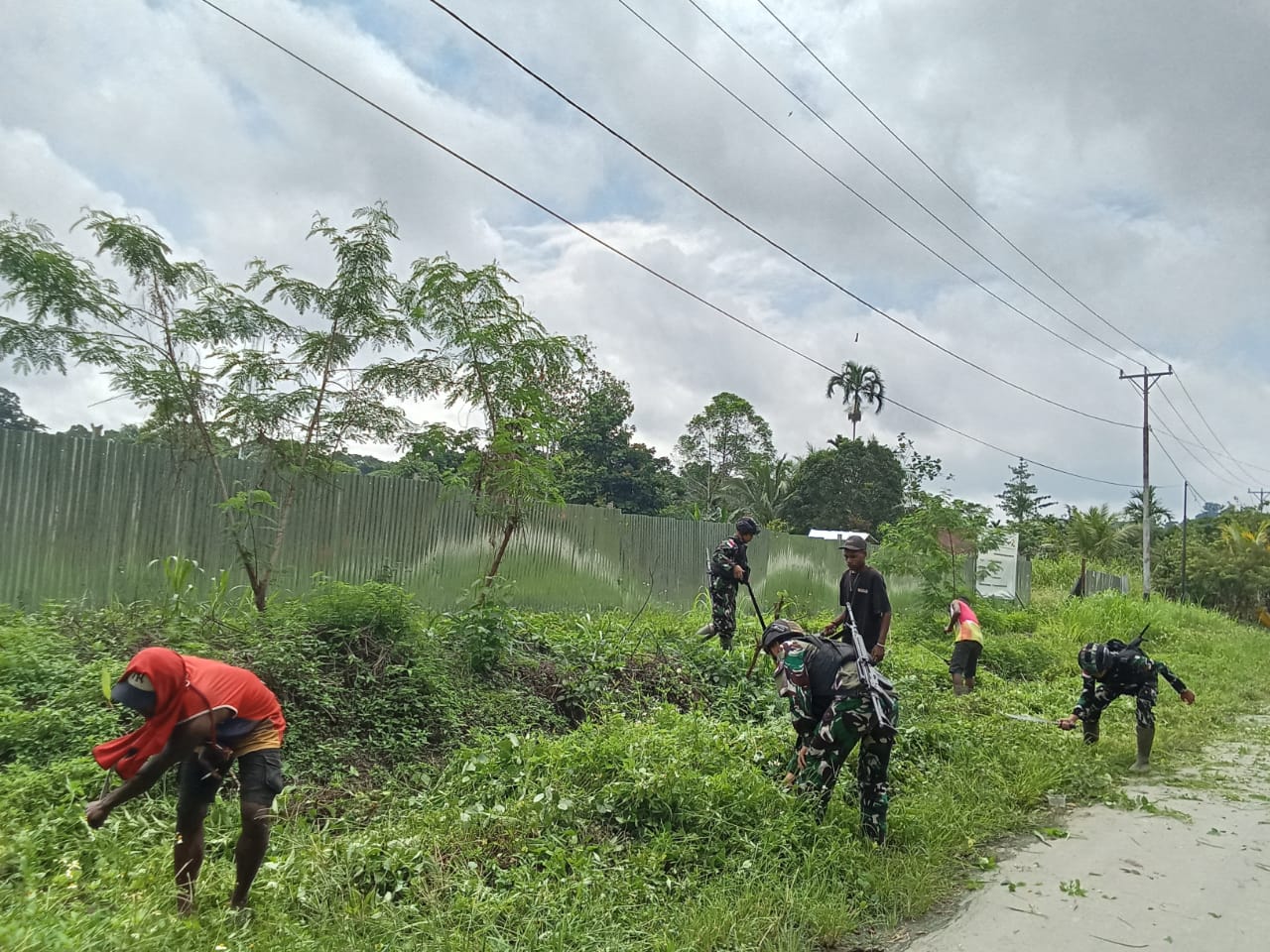 Disela kegiatan, Danpos (Komandan Pos) Bompay, Lettu Inf Yamin Juyamin menambahkan, kegiatan melibatkan 10 personilnya bersama masyarakat sekitar. Karya bhakti ini dimulai pukul 08.00 WIT, secara bergotong royong personil Satgas dan masyarakat membersihkan bahu jalan dengan menggunakan alat yang mereka miliki seperti mesin babat rumput, cangkul dan parang.