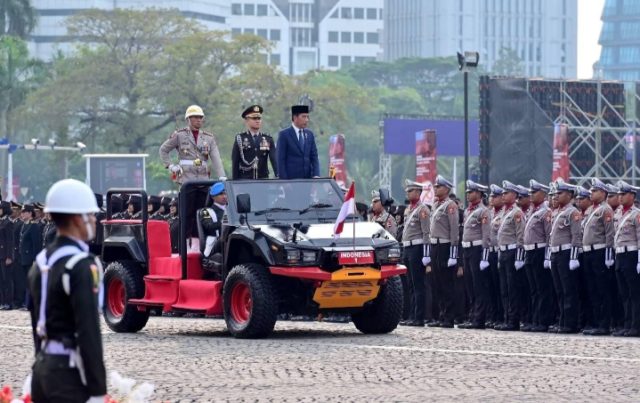 Jakarta, Media Sakti.id,- Presiden Joko Widodo Menghadiri Upacara peringatan Hari Bhayangkara ke-78 menandai dedikasi Polri dalam menjaga stabilitas keamanan dan mendukung agenda pembangunan nasional. Pada kesempatan ini, saya menganugerahkan Tanda Kehormatan Bintang Bhayangkara Nararya kepada tiga personel Polri yakni Kombes Pol. Dedy Murti Haryadi dari Koorspriprim Polri, AKP Tati Rusmiati dari Kaurreglittap Subbagrehabpers Bidpropam Polda Jabar, dan Aipda Dwi Kuntoro dari Danton 2 Kie 3 Yon B Men II Paspelopor Korbrimob Polri.