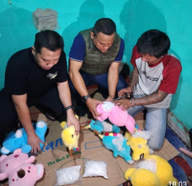 Tim menyita barang bukti berupa narkotika jenis shabu sebanyak 12 paket bungkus plastik ukuran besar (berat 6 Kg) yang berada di dalam 8 boneka berikut alat komunikasi 1 unit Handphone.