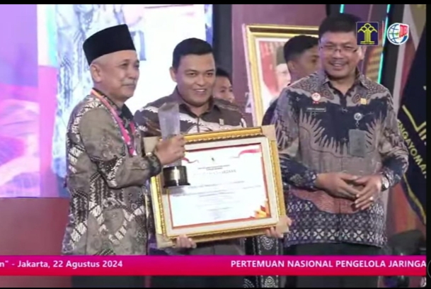Penghargaan tersebut diserahkan langsung oleh Kepala BPHN Kementerian Hukum dan HAM Republik Indonesia, Prof. Dr. Widodo Ekatjahjana. S.H., M.Hum yang diterima langsung oleh Sekretaris DPRD Kabupaten Pangandaran Drs. Heri Gustari.,M.Si di Ball Room Hotel Aston Kartika Jakarta , Jln Kiyai Tapa Grogol Jakarta Pusat, Kamis, 22 Agustus 2024.