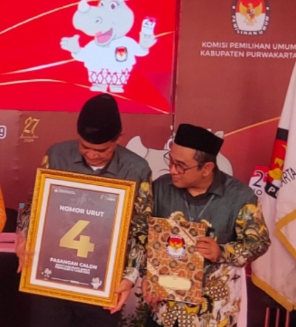Purwakarta, Media Sakti.id,- Komisi Pemilihan Umum (KPU) Kabupaten Purwakarta telah melakukan pengundian nomor urut pasangan calon Bupati dan Wakil Bupati untuk Pilkada Kabupaten Purwakarta 2024 di Kantor KPU Purwakarta, Jawa Barat, Senin (23/9/2024).