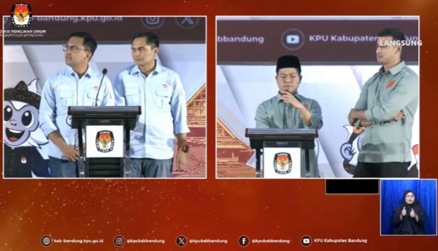Debat perdana Calon Bupati dan Wakil Bupati Bandung tersebut berlangsung sengit dan meriah, dengan mengambil tema “Akselerasi Pembangunan Daerah Yang Berkesinambungan dan Berorientasi Kepada Pelayanan Publik Yang Berkualitas Menuju Kabupaten Bandung Yang Maju dan Unggul”.