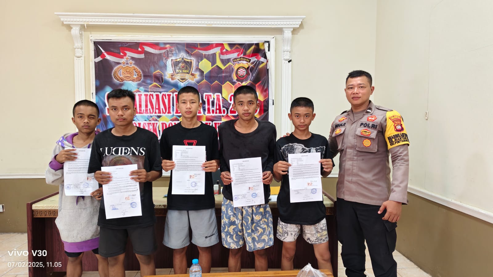 Usai diberikan pengarahan,kelima remaja tersebut dibuatkan surat pernyataan untuk tidak mengulangi perbuatannya dan dikembalikan kepada orang tua masing-masing untuk dilakukan pembinaan dan pengawasan.