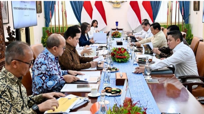 Presiden Prabowo Subianto menggelar rapat terbatas dengan sejumlah jajaran Menteri Kabinet Merah Putih di Istana Merdeka, Jakarta, pada Senin, 17 Februari 2025.