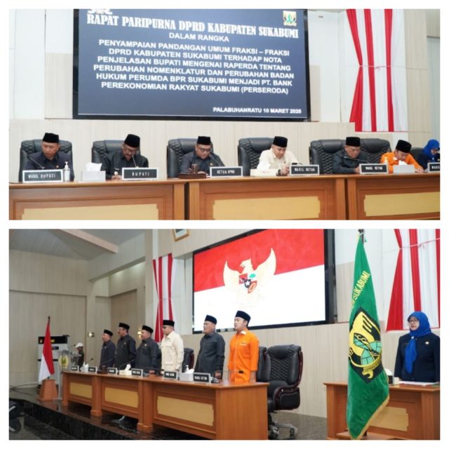 Penyampaian Pandangan Umum Fraksi-Fraksi DPRD terhadap Nota Penjelasan Bupati mengenai Rancangan Peraturan Daerah (Raperda) tentang Perubahan Nomenklatur dan Perubahan Badan Hukum Perumda BPR Sukabumi menjadi PT. Bank Perekonomian Rakyat Sukabumi (Perseroda).Senin (10/03/2025 )