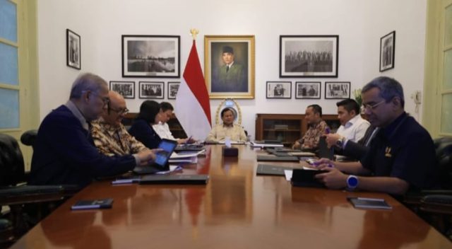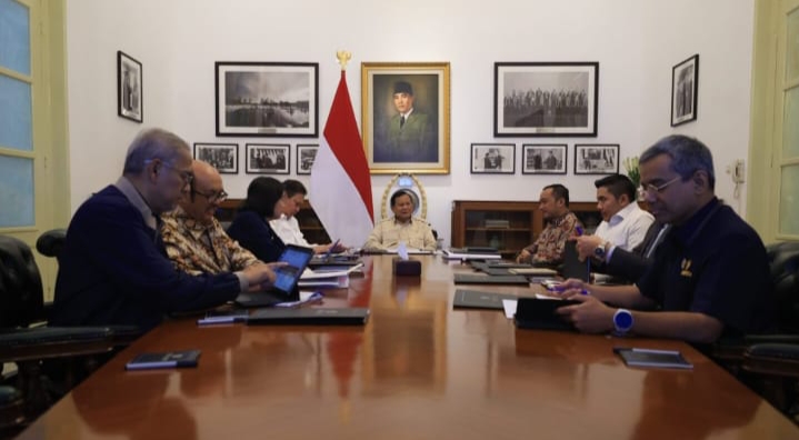 Presiden Prabowo Subianto menggelar rapat bersama sejumlah menteri Kabinet Merah Putih di Istana Merdeka, Jakarta, pada Rabu, 26 Maret 2025.