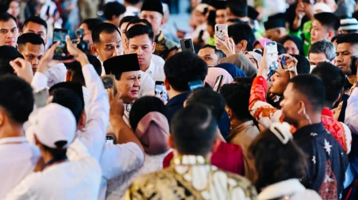 Presiden Prabowo Subianto menyapa dan bersilaturahmi dengan masyarakat di Istana Kepresidenan Jakarta, pada Senin, 31 Maret 2025.