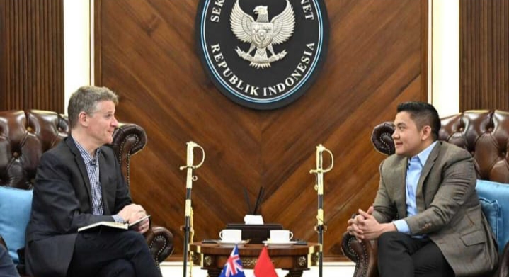 Sekretaris Kabinet Teddy Indra Wijaya bertemu dengan Duta Besar Australia untuk Republik Indonesia, Roderick Bruce Brazier, di Gedung Sekretariat Kabinet, Jakarta, pada Senin, 12 Mei 2025, guna membahas rencana kunjungan resmi Perdana Menteri (PM) Australia, Anthony Albanese.
