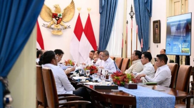 Presiden Prabowo Subianto memimpin rapat terbatas bersama sejumlah jajaran Menteri Kabinet Merah Putih di Istana Merdeka, Jakarta, pada Kamis, 8 Mei 2025. Presiden Prabowo Subianto memimpin rapat terbatas bersama sejumlah jajaran Menteri Kabinet Merah Putih di Istana Merdeka, Jakarta, pada Kamis, 8 Mei 2025. Agenda utama rapat tersebut adalah membahas percepatan pembangunan Koperasi Desa/Kelurahan Merah Putih sebagai upaya memperkuat ekonomi desa dan memperpendek rantai pasok kebutuhan pokok masyarakat.
