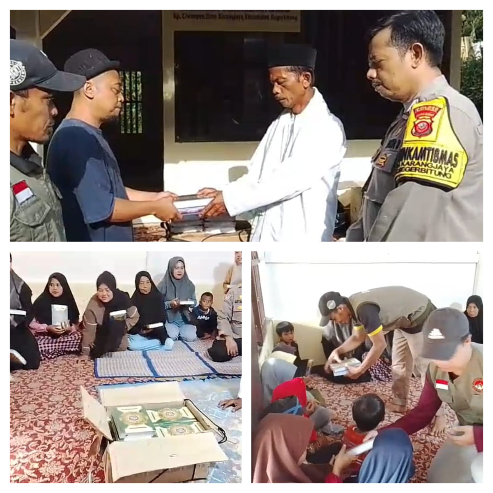 “Saya sebagai Bhabimkamtibmas Desa Karangjaya, khususnya dari warga Kampung Ciwangun, mengucapkan terima kasih sebesar-besarnya kepada relawan memberikan 50 AlQuran kepada Madrasah Bhabinkamtimas, semoga amal ibadahnya diterima oleh Allah Subhana Wata Alah. AlQuran memang ada , tapi sudah pada sobek, mungkin yang kemaren saya membangung ini, rekan-rekan relawan ikut peduli terhadap madrasah ini, karena AlQuran sebelumnya lembarannya sudah pada hilang, sudah tidak layak pakai, “Pungkasnya.