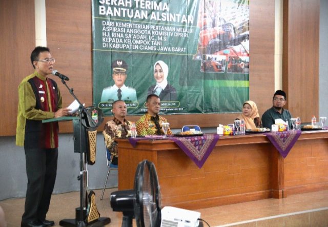 Pemerintah Kabupaten Ciamis kembali menerima bantuan alat dan mesin pertanian (Alsintan) dari Kementerian Pertanian Republik Indonesia. Serah terima bantuan tersebut dilaksanakan di Aula Dinas Pertanian dan Ketahanan Pangan Kabupaten Ciamis pada Kamis (19/06/2025), dan dihadiri langsung oleh Bupati Ciamis, Herdiat Sunarya.