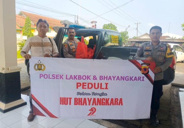 Kapolres Ciamis Polda Jabar AKBP Akmal SH., S.I.K., M.H., melalui Kapolsek Lakbok Iptu Tri Widiyanto mengatakan, hari ini Polsek Lakbok Polres Ciamis Polda Jabar melaksanakan kegiatan Bakti Sosial dalam rangka Hari Bhayangkara ke-79. Ini sebagai bentuk kepedulian Polri terhadap masyarakat yang membutuhkan di wilayah Kecamatan Lakbok dan Purwadadi Kabupaten Ciamis.
