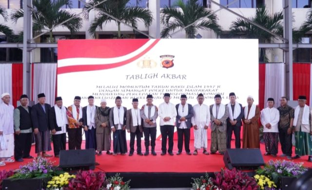 Kepolisian Daerah Jawa Barat (Polda Jabar) menggelar Tabligh Akbar yang meriah di Lapangan Tenis Indoor Mapolda Jabar pada Kamis (26/6/2025) sore. Acara istimewa ini diadakan dalam rangka memperingati Hari Bhayangkara ke-79 dan menyambut Tahun Baru Islam 1447 Hijriah, sekaligus menjadi momentum doa bersama untuk terwujudnya Jawa Barat Istimewa.