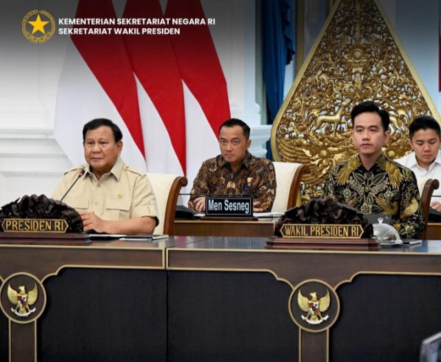 Wapres Gibran Rakabuming bersama sejumlah Menteri Kabinet Merah Putih menghadiri rapat terbatas membahas perkembangan Kawasan Ekonomi Khusus (KEK) yang dipimpin oleh Presiden Prabowo Subianto di Istana Merdeka, Jakarta pada Selasa (22/07/2025).