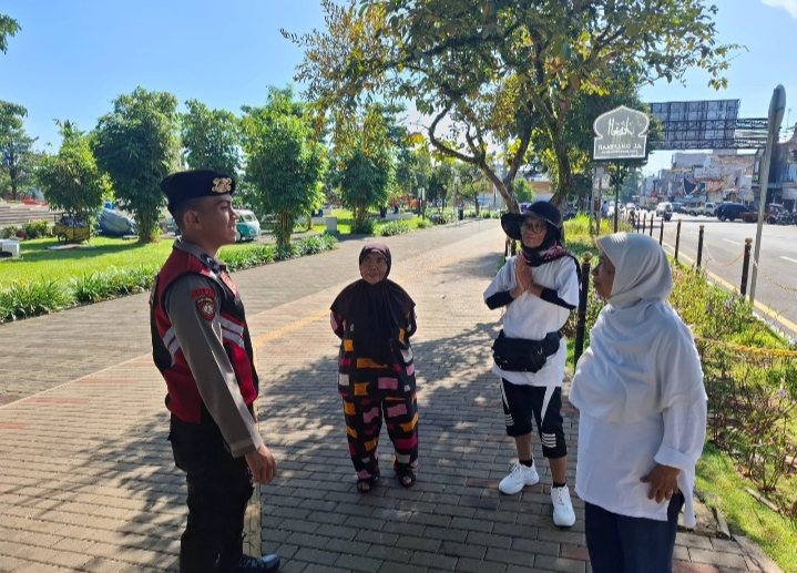 Cipkon Area Publik, Dua Personel Sat Samapta Polres Ciamis Patroli Jalan Kaki di Alun Alun Ciamis
