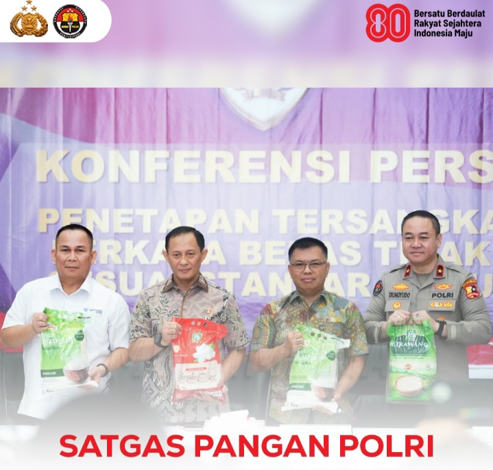 Direktorat Tindak Pidana Ekonomi Khusus (Dirtipideksus) Bareskrim Polri menyita 132,65 ton beras kemasan produksi PT Food Station (FS) karena tidak memenuhi standar mutu beras premium.