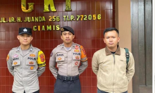 Salah satunya pengamanan yang dilakukan Personel Polsek Ciamis Polres Ciamis Polda Jabar saat pelaksanaan Kebaktian Minggu Pagi di sekitar Gereja Kristen Indonesia Ciamis. Personel bersiaga di sekitar Gereja Kristen Indonesia yang berada di Jl. Ir. H. Juanda No.090, Ciamis, Kabupaten Ciamis, Jawa Barat, Minggu (24/8/2025).