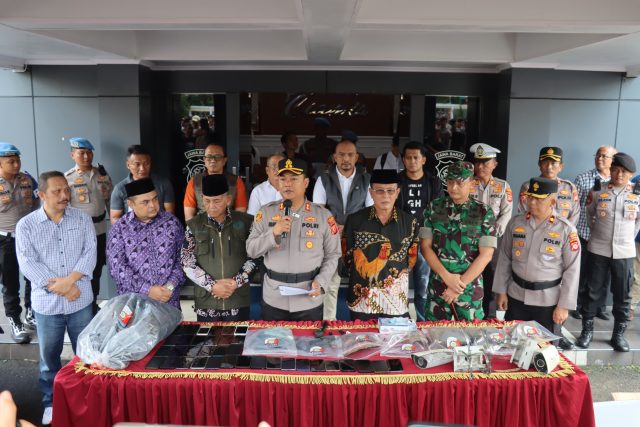 Polres Ciamis mengadakan konferensi pers di Aula Pesat Gatra pada Minggu, 30 Agustus 2025, untuk merilis pengungkapan kasus tindak pidana kekerasan dan perusakan di Gedung DPRD Ciamis. Dalam acara yang dipimpin oleh Kapolres Ciamis AKBP H. Hidayatullah, S.H., S.I.K., polisi menetapkan 16 tersangka dari 38 orang yang diamankan.