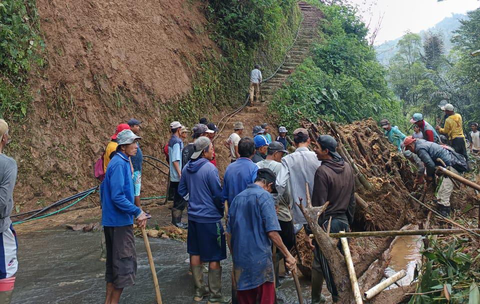 “Peristiwa ini mengakibatkan akses jalan raya Desa Sukahurip menuju Gunung Sawal tertutup material longsor rumpun bambu. Namun sudah bisa dilalui setelah tim gabungan BPBD, Pemdes, Polsek Cihaurbeuti dan masyarakat serta relawan bergerak bersama membersihkan material longsor,” kata Iptu Agus Predi Muharom menambahkan.