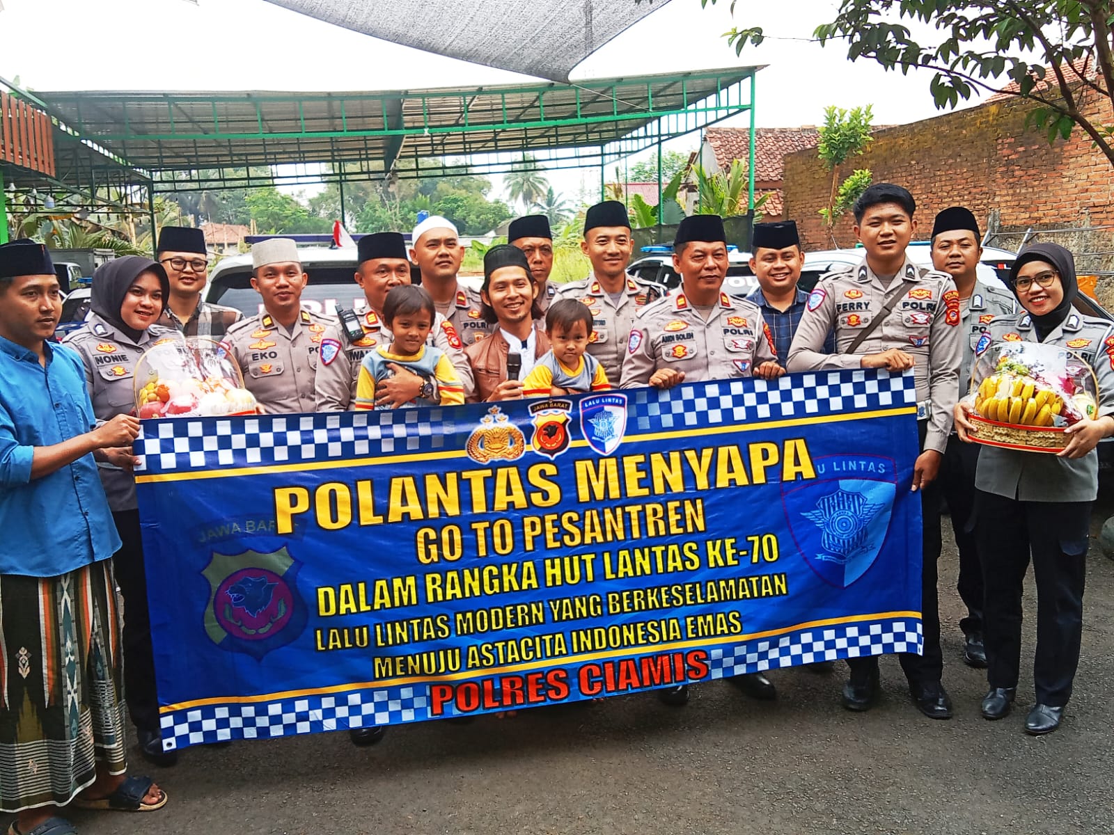 Dalam rangka memperingati Hari Ulang Tahun (HUT) Lalu Lintas Bhayangkara ke-70, jajaran Satuan Lalu Lintas (Satlantas) Polres Ciamis melaksanakan kegiatan silaturahmi ke pondok pesantren melalui program “Go to Pesantren”. Salah satu kunjungan tersebut dilakukan ke Pondok Pesantren Hidayatul Mubtadieen, Kecamatan Cikoneng, Kabupaten Ciamis, pada Jumat (5/9/2025).