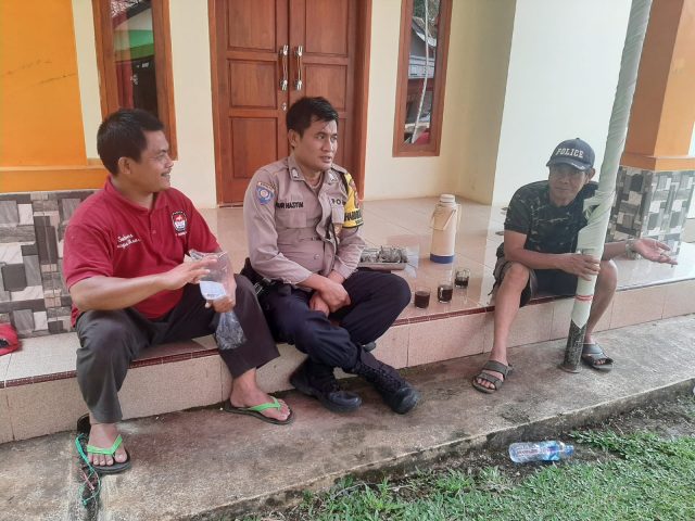 Personel Polsek Cipaku Polres Ciamis Polda Jabar mendatangi warga yang sedang melaksanakan aktifitas dalam rangka cipta kondisi antisipasi gangguan kamtibmas pasca aksi demonstrasi berujuk anarkisme oleh sejumlah oknum tidak bertanggungjawab di wilayah Kabupaten Ciamis khususnya dan umumnya Indonesia. Kegiatan ini berlangsung hangat bersama di kediaman salah seorang tokoh masyarakat Asep Saepul Uyun di Dusun Cicanggong Rt 07 Rw 04. Desa Bangbayang, Kecamatan Cipaku, Kabupaten Ciamis, Jawa Barat, Sabtu (6/9/2025).