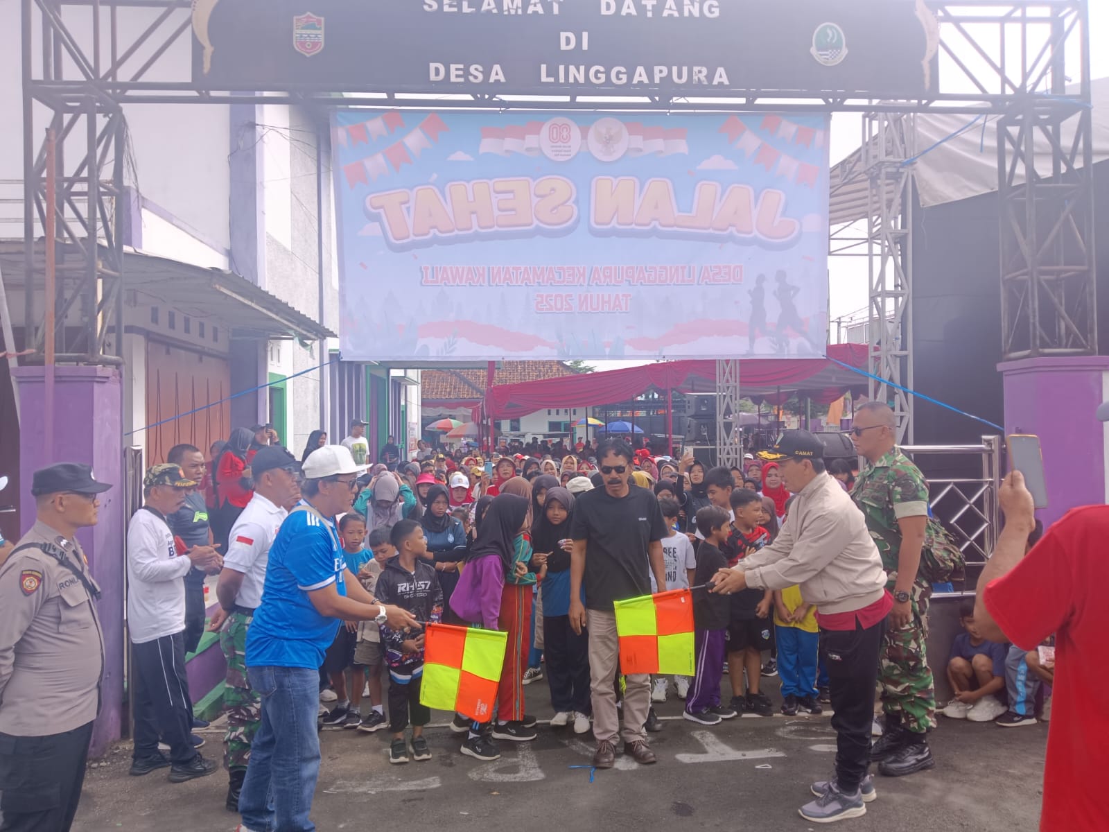Untuk memastikan kegiatan berlangsung aman dan tertib, Polsek Kawali Polres Ciamis menurunkan tiga personel yang bekerja sama dengan empat personel Koramil Kawali. Sejak pagi, para petugas terlihat mengatur lalu lintas di rute jalan sehat yang melintasi sejumlah ruas jalan desa, mulai dari Halaman Kantor Desa Linggapura, SP3 SPBU Kawali, Jalan Nanggela, Jalan Cikebo, Jalan Cukangbiru, Jalan Linggaari, Jalan Gombong, Jalan Siliwangi hingga kembali finis di Kantor Desa Linggapura.