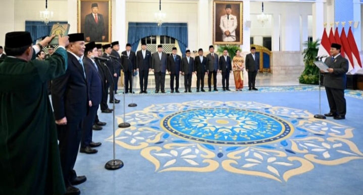 Dalam kesempatan tersebut, Presiden Prabowo mengambil sumpah jabatan para menteri dan wakil menteri yang dilantik.