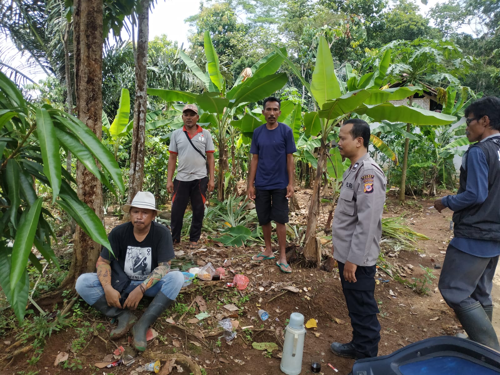 Dalam kunjungan tersebut, Aiptu Hendra berdialog langsung dengan warga setempat, salah satunya Sdr. Dindin, guna menyampaikan pesan-pesan penting terkait keamanan dan ketertiban masyarakat.