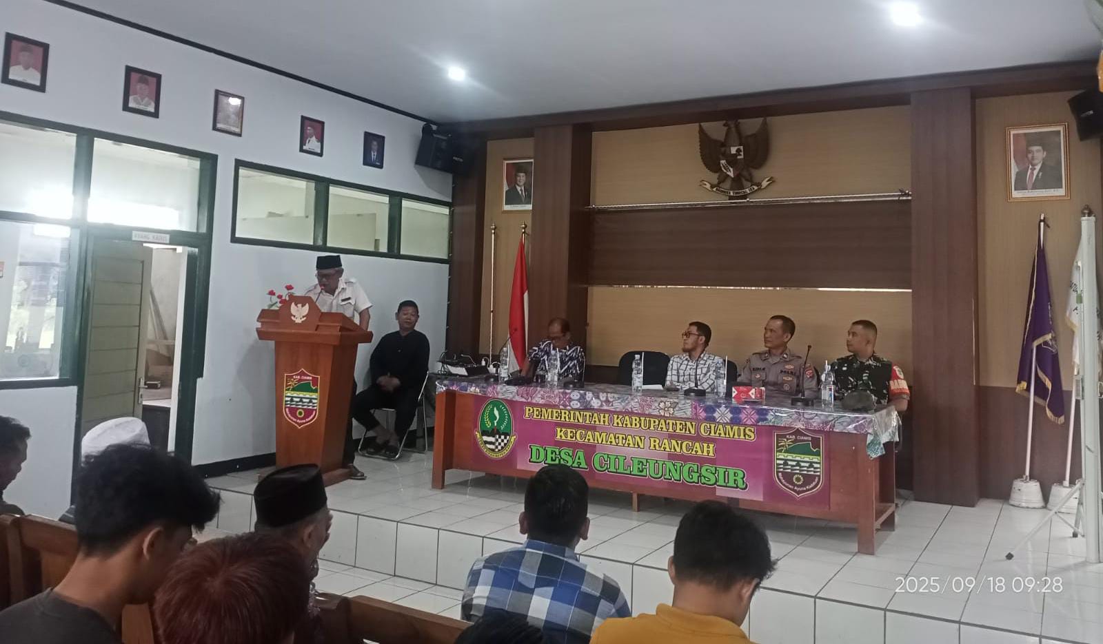 Personel Polsek Rancah Polres Ciamis Polda Jabar melaksanakan monitoring kegiatan reses anggota DPRD Kabupaten Ciamis di Desa Cileungsir. Reses ini dilaksanakan di Aula Kantor Desa Cileungsir, Kecamatan Rancah, Kabupaten Ciamis, Jawa Barat, Kamis (18/9/2025).