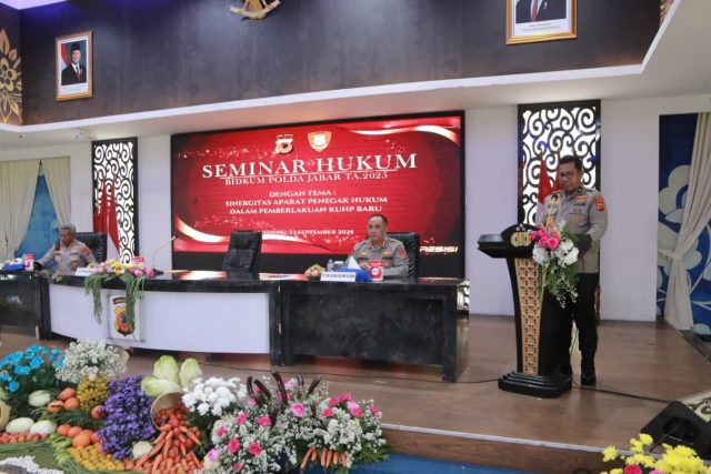 Kepolisian Daerah Jawa Barat menggelar Seminar Hukum Bidkum Polda Jabar 2025 dengan tema “Sinergitas Aparat Penegak Hukum dan Pemberlakuan KUHP Baru”. Kegiatan ini berlangsung pada Selasa (23/9/2025) di Aula Lantas Polda Jabar.