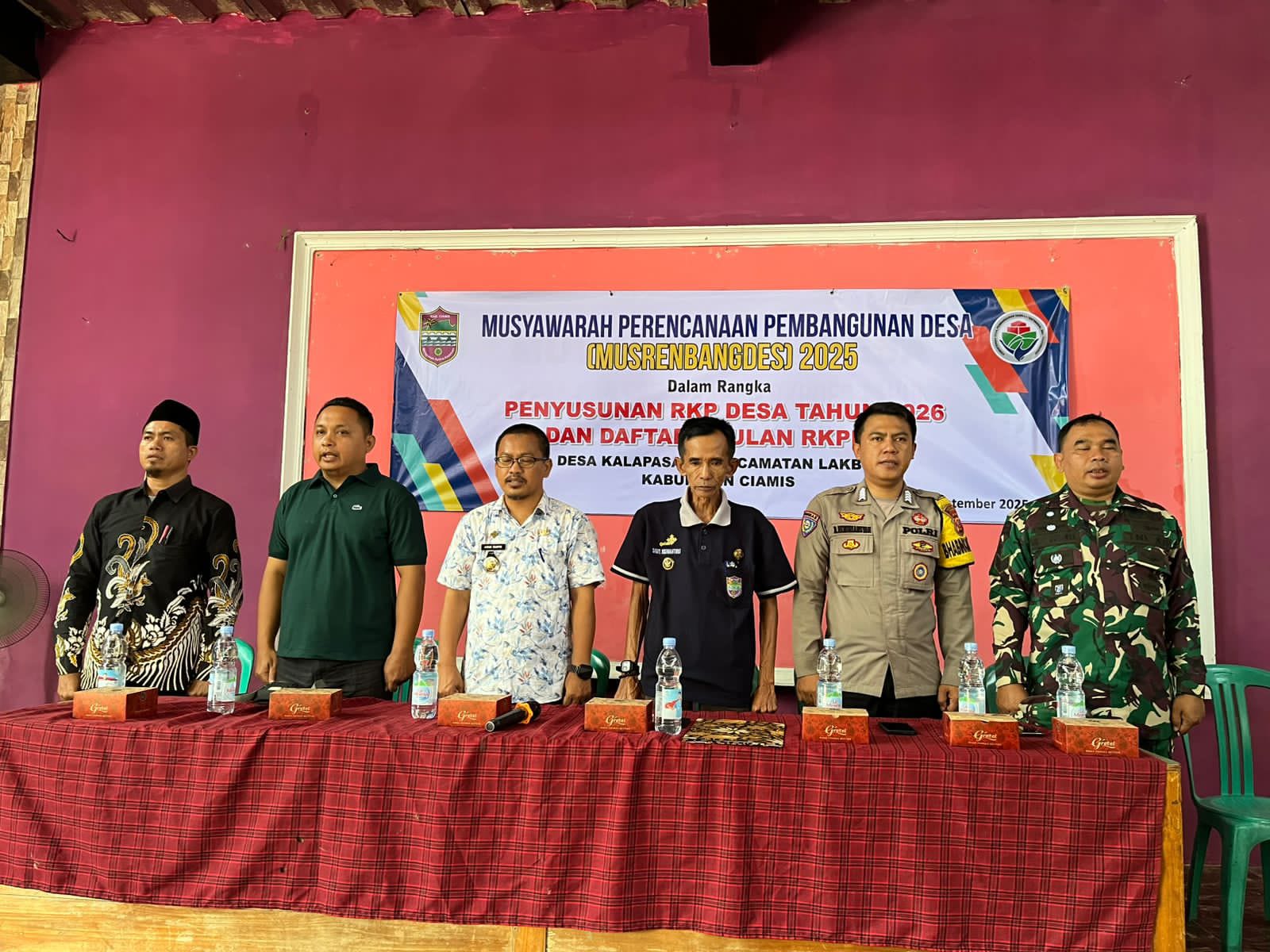 Polsek Lakbok Polres Ciamis Polda Jawa Barat mengikuti kegiatan Musyawarah Rencana Pembangunan Desa (Musrenbangdes) RKPDES Tahun 2026 Desa Kalapasawit Kecamatan Lakbok Kabupaten Ciamis. Kegiatan tersebut dilaksanakan di GOR Kantor Desa Kalapasawit, Kecamatan Lakbok, Kabupaten Ciamis, Jawa Barat, Jumat (26/9/2025).