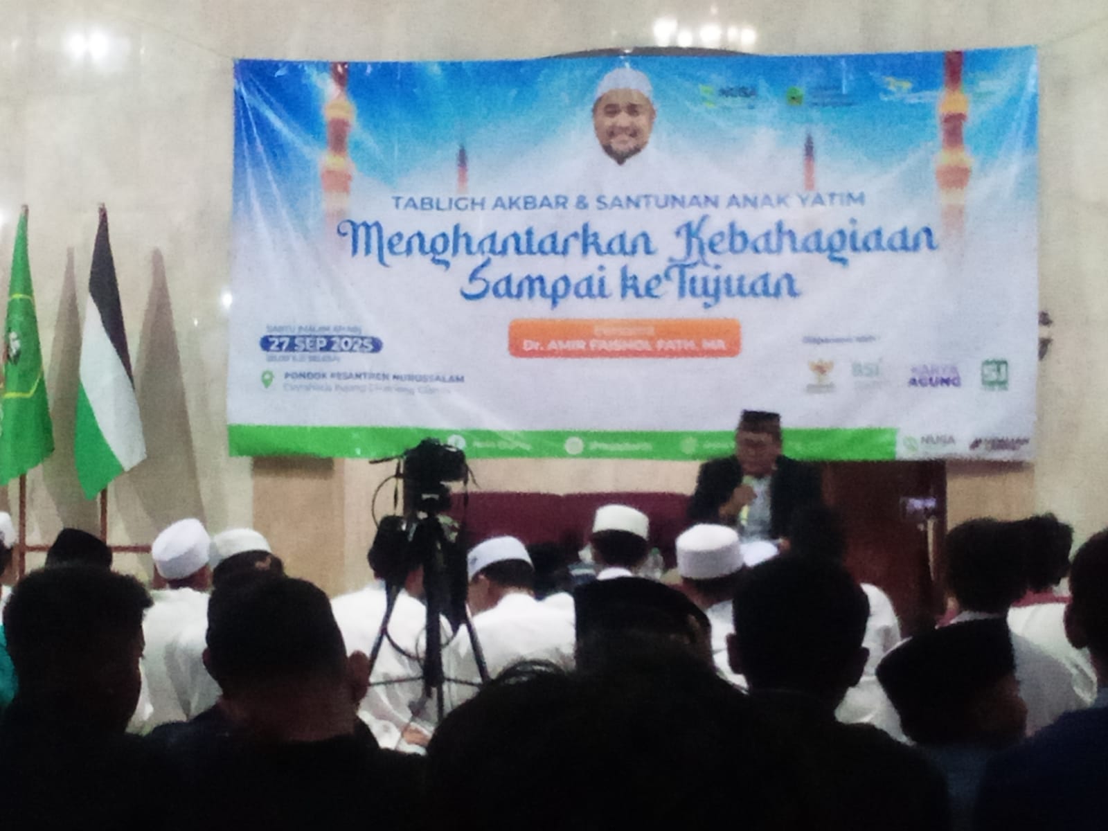Kepolisian Resor Ciamis melalui jajaran Polsek Cikoneng terus aktif menjalin kedekatan dengan masyarakat, tidak hanya lewat kegiatan pengamanan, tetapi juga melalui pendekatan keagamaan. Hal ini tampak pada pelaksanaan Tabligh Akbar di Pondok Pesantren Nurusalam, Dusun Cintaharja, Desa Kujang, Kecamatan Cikoneng, Kabupaten Ciamis yang digelar pada Sabtu malam (27/09/2025).