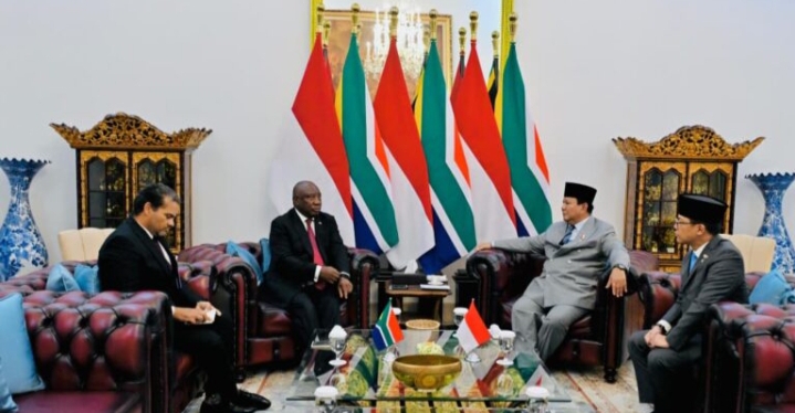 Presiden Republik Indonesia Prabowo Subianto dan Presiden Republik Afrika Selatan Matamela Cyril Ramaphosa menggelar pertemuan bilateral yang berlangsung dalam format working lunch bersama delegasi masing-masing di Istana Merdeka, Jakarta, pada Rabu, 22 Oktober 2025. Dalam pertemuan yang berlangsung hangat dan bersahabat tersebut, kedua pemimpin negara menekankan pentingnya meningkatkan kolaborasi ekonomi dan memperkuat peran negara-negara di kawasan global selatan.