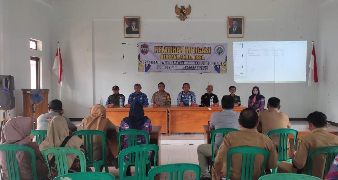 Polres Ciamis memperkuat peran aktif masyarakat dalam menghadapi potensi bencana melalui Pelatihan Mitigasi Bencana Skala Desa di Desa Sidamulya, Kecamatan Cisaga. Kegiatan yang didanai dari Dana Desa Tahun 2025 ini dilaksanakan di Aula Desa Sidamulya dan dihadiri berbagai unsur masyarakat dan perangkat desa, termasuk Pj. Kepala Desa, BPD, Pendamping Desa, perwakilan BPBD Kabupaten Ciamis, serta tokoh masyarakat, pemuda, dan agama.