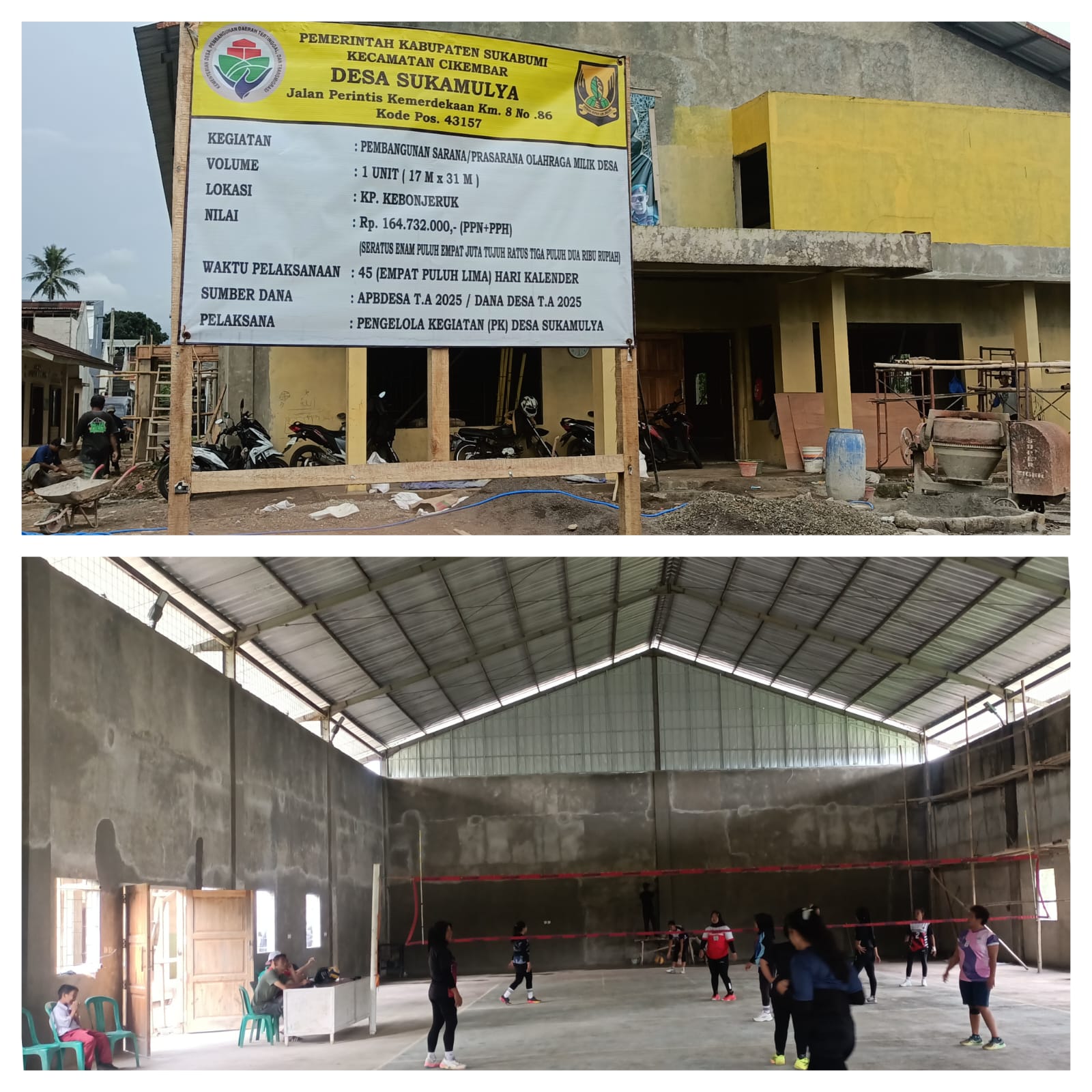 Lanjut Dudun, S.Ag mengatakan bahwa,pembangunan ini sengaja kita desain lebih tinggi,dimana Nota Banenya selain fasilitas olahraga juga dapat menjadi gedung serbaguna yang dapat bermanfaat bagi masyarakat khususnya Desa Sukamulya.